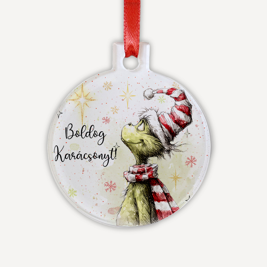 Boldog Karácsonyt akril karácsonyfadísz – Grincs