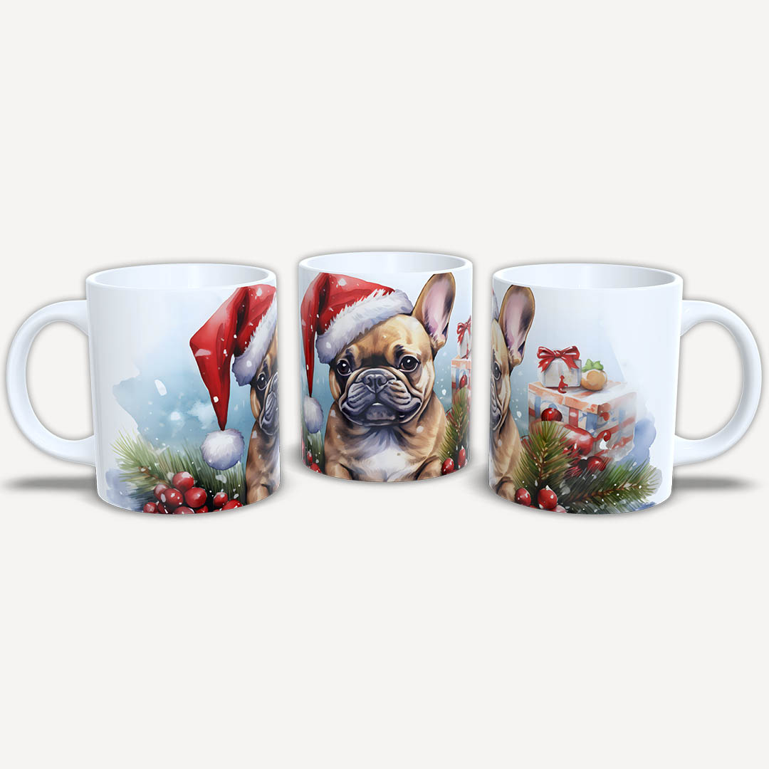 Karácsonyi mintás bögre francia bulldoggal