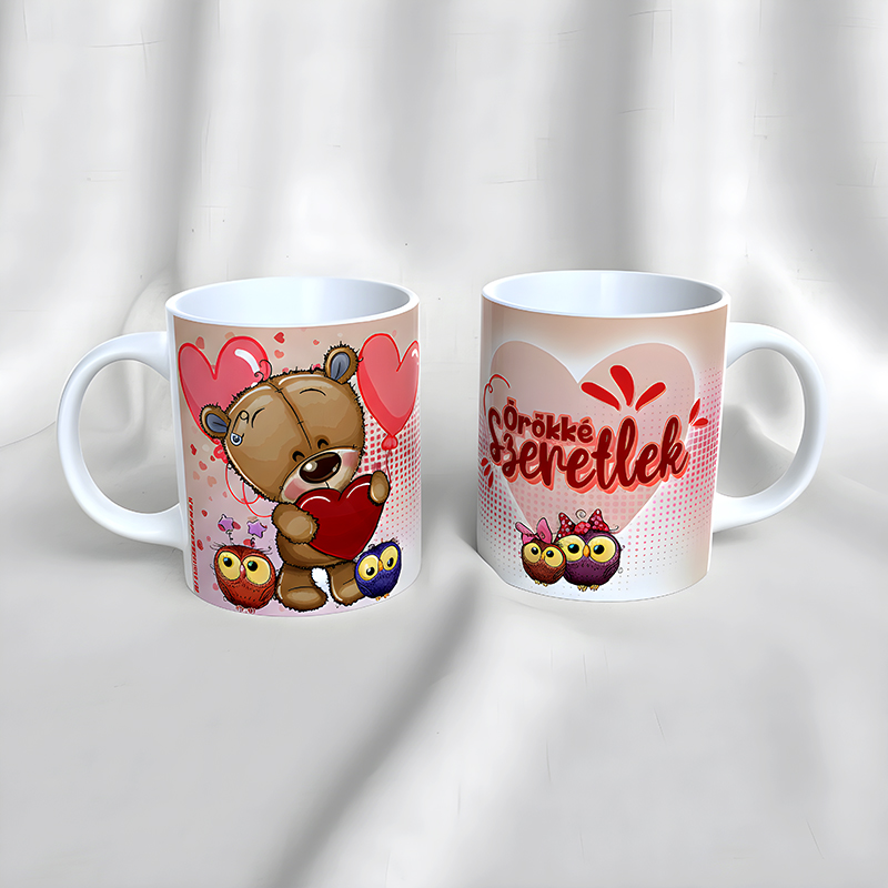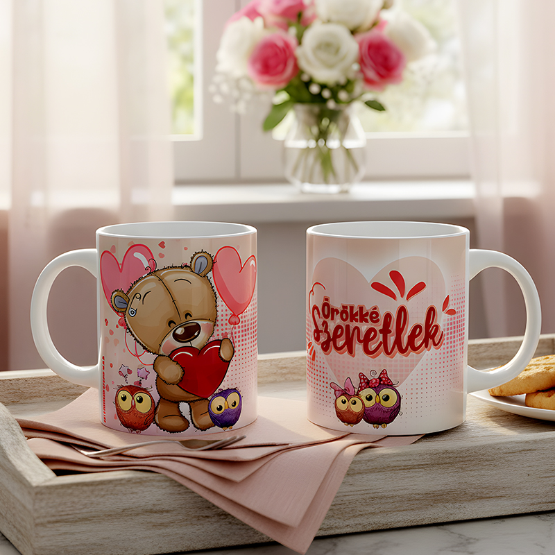 Ezzel a kedves és szerethető bögrével minden nap emlékeztetheted a párodat arra, mennyire fontos neked. A maci, a kis bagoly páros és a szívecskés minta mind azt üzeni: „Örökké szeretlek” – és ezt nem lehet elégszer hallani.