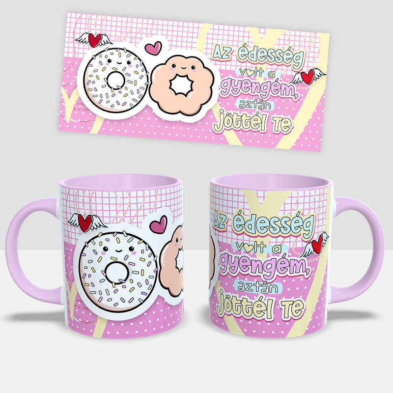 Valentin napi ajándék bögre – Az édesség volt a gyengém, aztán jöttél te- rózsaszín