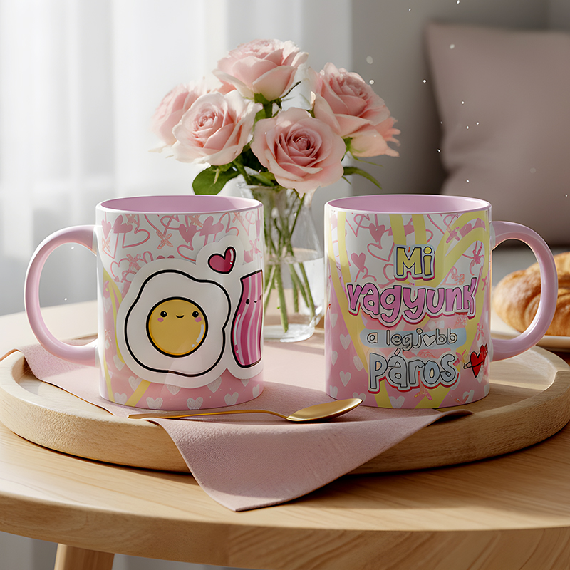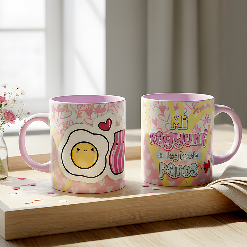A kedves, szerethető grafika és a romantikus üzenet minden reggelt mosollyal indít – mert a szeretetből sosem elég, főleg nem bögrében.